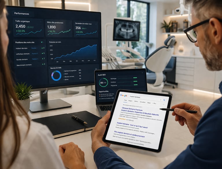 Nous créons des sites haut de gamme qui attirent des patients à forte valeur (implants, esthétique) et renforcent votre crédibilité.